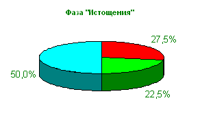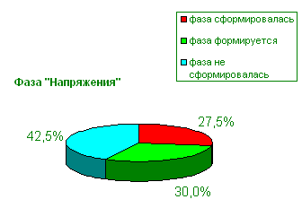 Наименее выраженным оказался симптом “эмоциональной отстраненности”. Он сложился у 17,5% педагогов, все они относятся к первой группе. Но складывается этот симптом у 30% педагогов, из них: 17,5 относятся к первой группе, 10% ко второй и 2,5% к третьей группе. Педагоги, пораженные этим симптомом, почти полностью исключают эмоции из профессиональной деятельности. Их почти не волнуют, не вызывают эмоционального отклика – ни позитивные обстоятельства, ни негативные. В целом фаза “истощения” сформировалась у 27,5% педагогов, в стадии формирования у 22,5% и не сформировалась у 50% педагогов.
