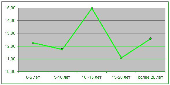 Мы рассмотрели количественные показатели синдрома эмоционального выгорания. Рассмотрим теперь возможную зависимость выгорания от стажа работы.